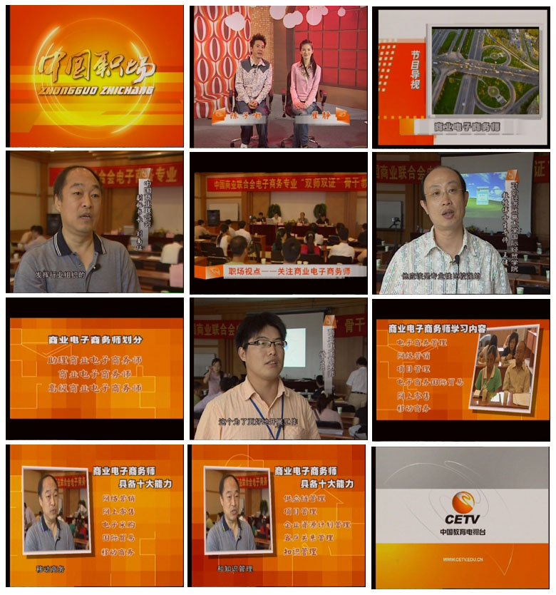 2006年7月24日,中国教育电视台一套“中国职场”栏目专题报道商业电子商务师执业资格认证项目。 RM格式,文件14M,录像时长8分41秒,点击右键另存为下载后观看!