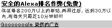 今天安逸了,看到51yes网站首页下放的google adsense广告了,上面有两个文字广告如下:安全的alexa排名作弊(免费) 提高网站排名的秘密武器 点开后自然是作弊的方法提高alexa排名的网站了,现在这样的网站特别多,没想到,还打广告打到google上面去了,更没想到google竟然接受了这样的广告,这个现象可以说明google在帮助中国人民甚至世界人民的网站提高alexa排名,而且是用作弊的方法提高alexa排名哦,这是否可以联想到google其实也允许作弊?那么他们推出的一些adsense adwords是不是也允许大家作弊?那么广告的投放者,我们的投资者们岂不是被欺骗了,而且是明摆着欺骗你?